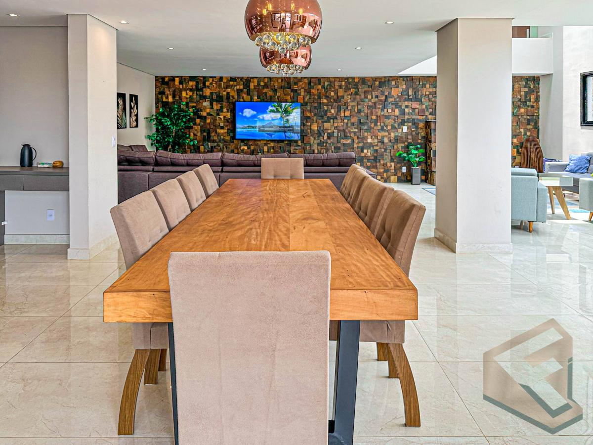 Sala e cozinha conceito aberto, 5 suítes todas com espaço closet, suíte master com 70 mts² com spa volta para uma vista esplendoroso nascer e pôr do sol, solarium, aérea gourmet, piscina e spa aquecidos, sauna seca com ducha, area verde para as crianças, dispensa e lavanderia.