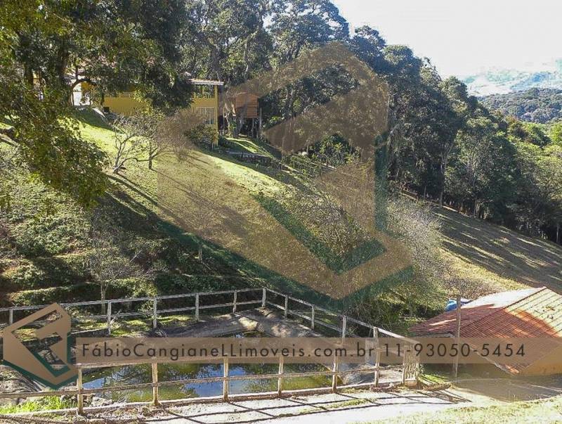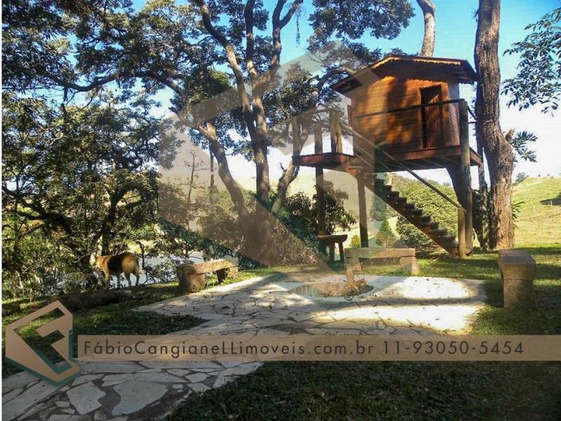 A vantagem desta grande terra é a casa principal, localizada no ponto estratégico do terreno para contemplar toda a vista que a área proporciona, casa para visitantes com ótima localização com 6 cômodos, canil amplo para até 10 cachorros, cascata, uma grande horta, estabulo e cocheira, plantação de feno, lago com carpa e truta, platô superior, garagem e rampa náutica, bosque e muitas árvores frutíferas.
