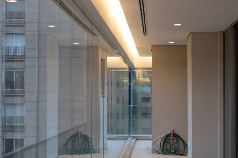 Varanda de 24 metros de frente, integrada varanda gourmet, as salas, cozinha e área de colaboradores. O ponto forte deste imóvel é sua varanda ícone que se possibilita decorar e colocar sua imaginação e bom gosto ao vislumbre da vista maravilhosa deste apartamento.