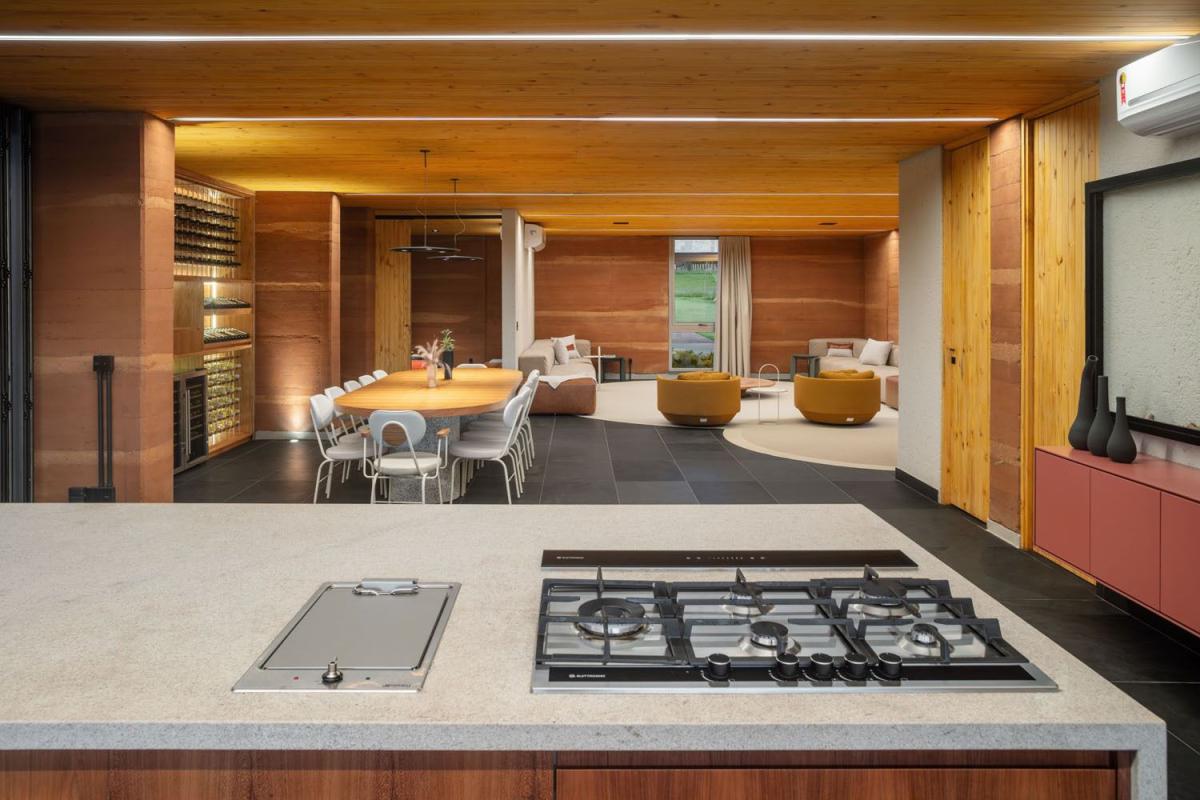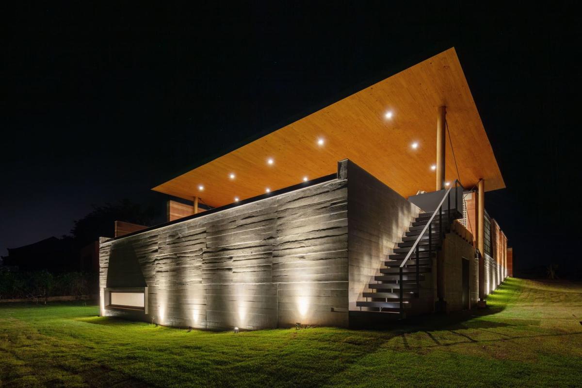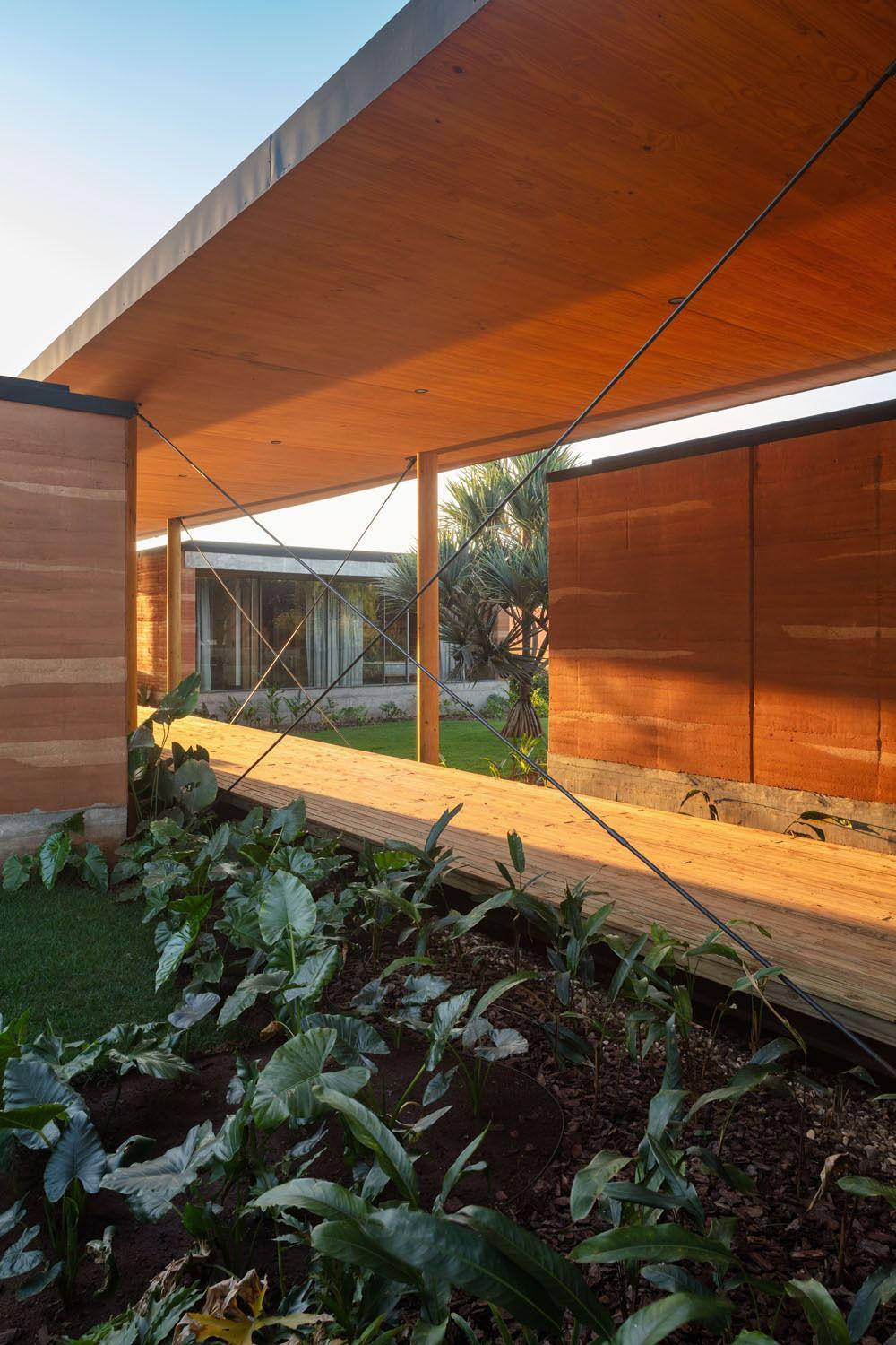 A casa é simplesmente irreplicável, foi usada a terra do próprio terreno para fazer as paredes de Taipa, o que levou aproximadamente 3 anos para ser concluído como um todo. Método construtivo inovador, que se mistura com o concreto aparente das fundações e sua imensa laje em CLT (Cross Laminated Timber - Madeira) com vão livre de 14 metros!