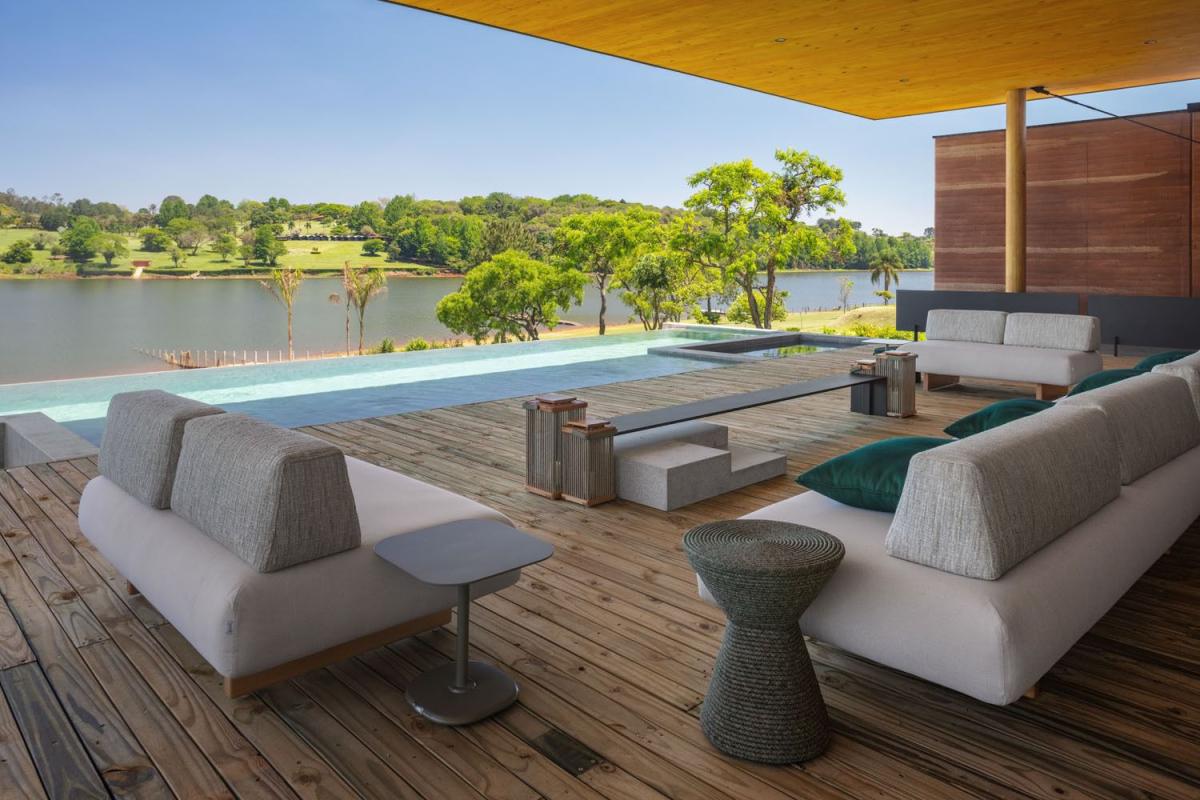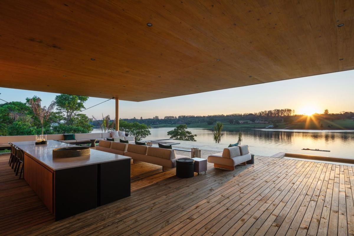 Esta casa, considerada uma das casas mais incríveis do Brasil, localizada as margem da represa de São Paulo é uma verdadeira obra de arte, assinada na arquitetura, design de interiores e todos os moveis - arquiteto Sérgio Sampaio. Em frente a represa, no braço mais valorizado e exclusivo da represa, a casa tem o pôr do sol de frente como protagonista. O terreno tem 10.000 mts², conta com quadra de tênis, quadra de beach tênis, jardins, pier na represa para barco e dois jet skis, e uma casa de hóspedes/serviço com duas suítes, completa com cozinha e lavanderia.