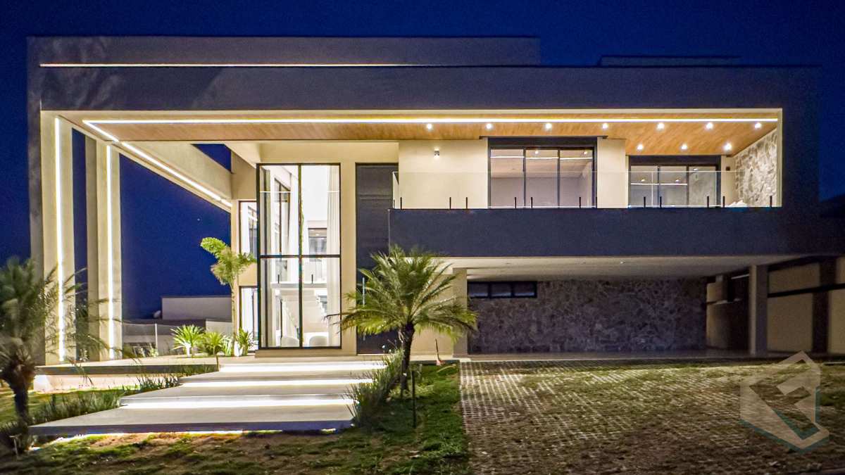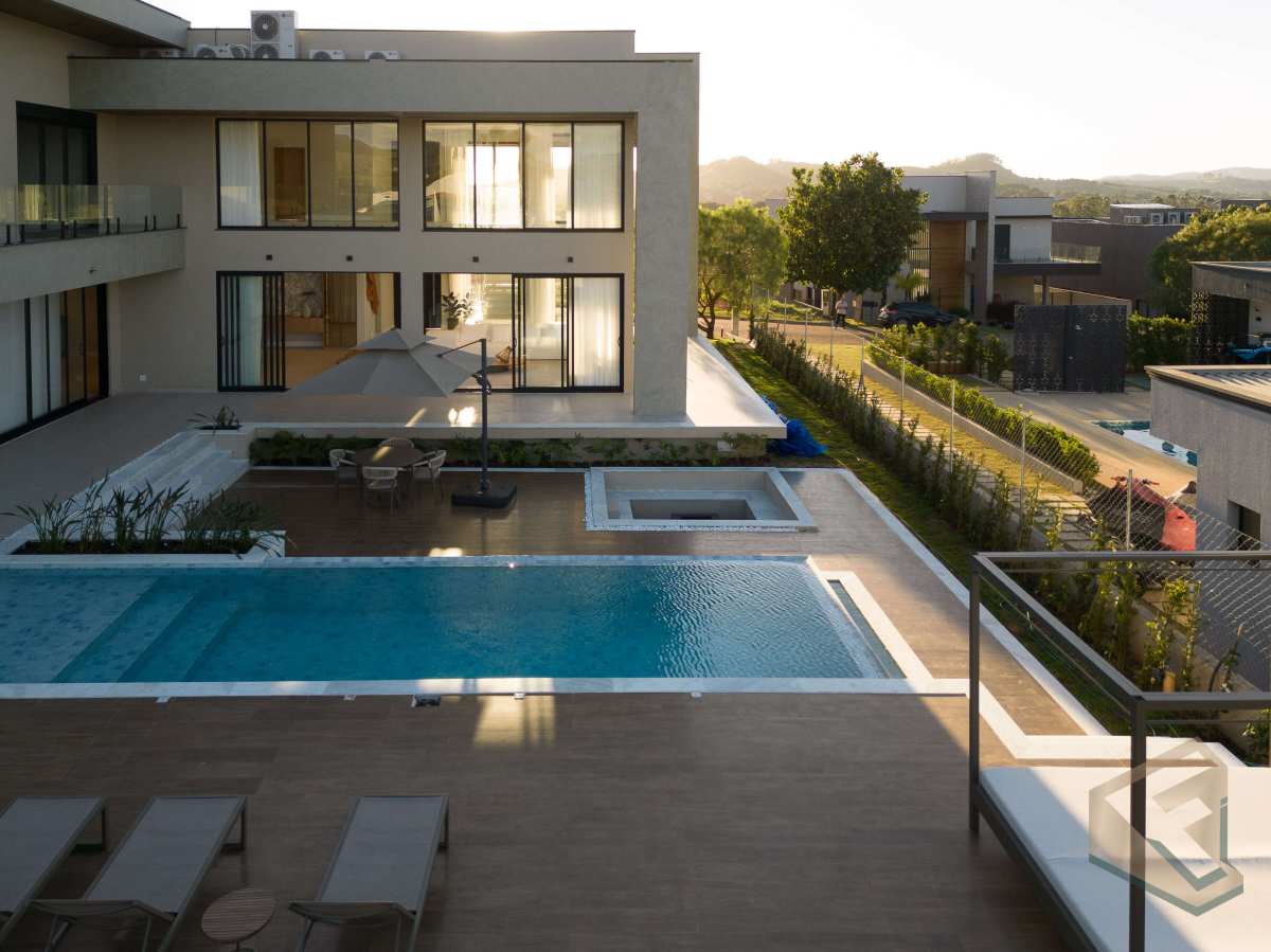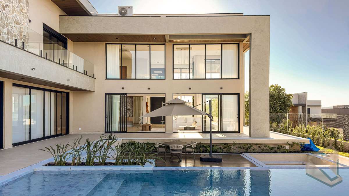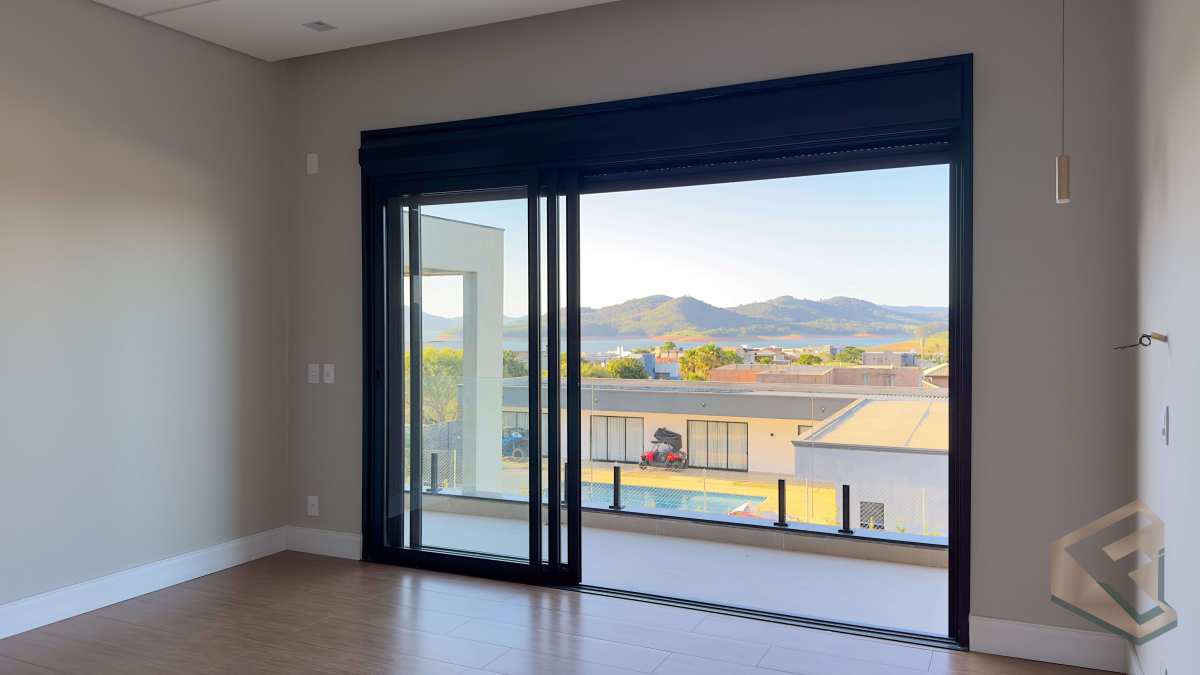 - Casa contemporânea em condomínio náutico de Piracaia, com integração total entre os ambientes e vista panorâmica para a represa.