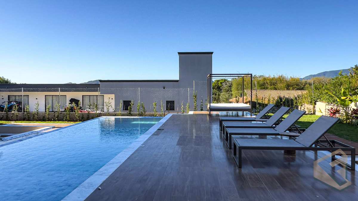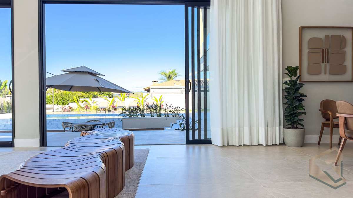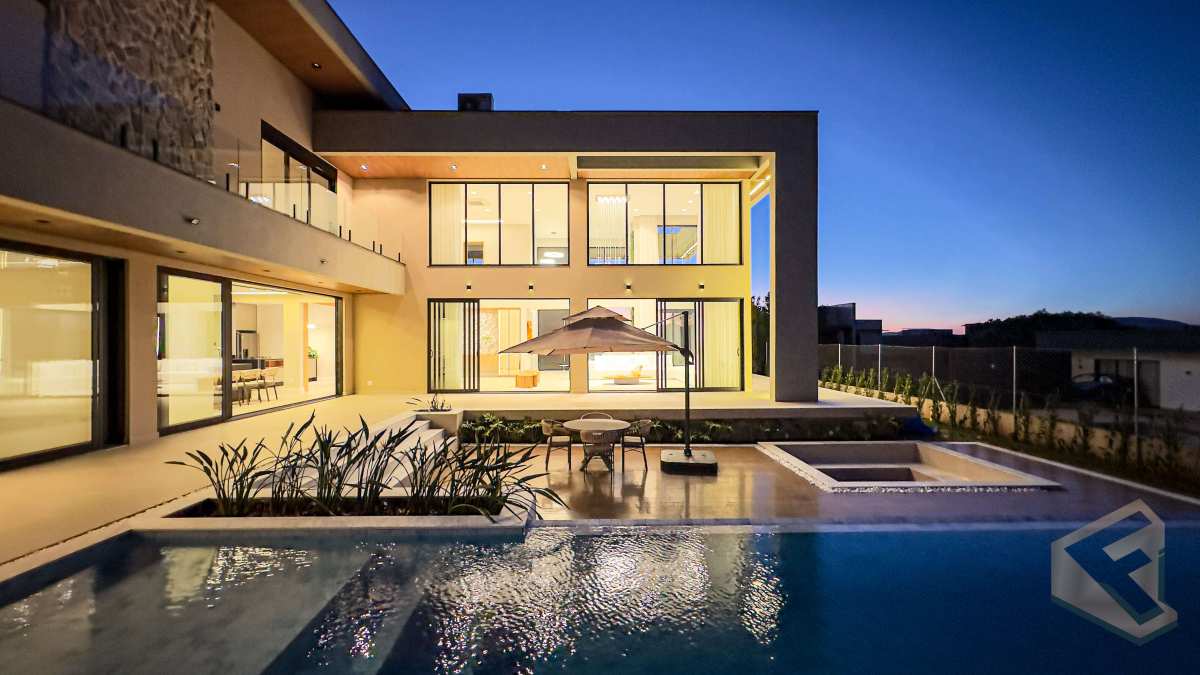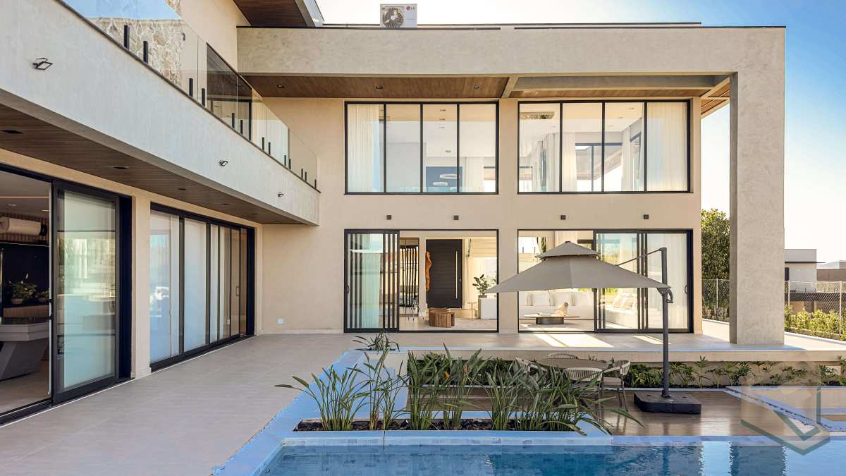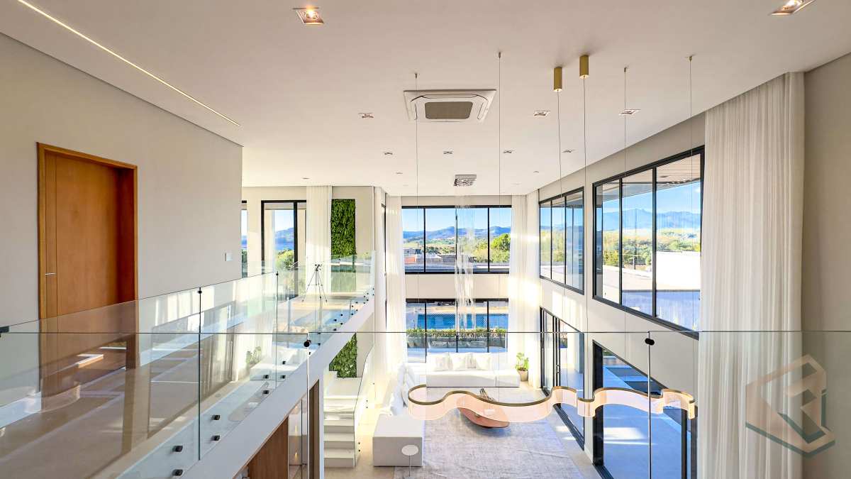 - Casa contemporânea em condomínio náutico de Piracaia, com integração total entre os ambientes e vista panorâmica para a represa.