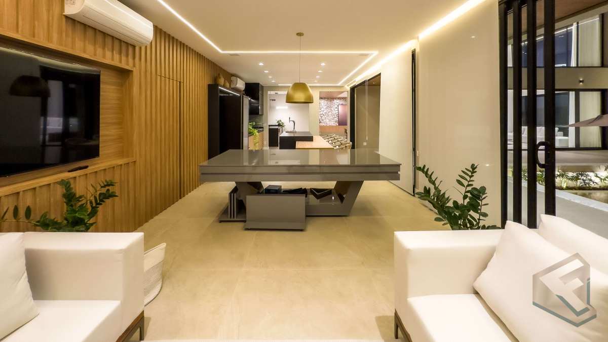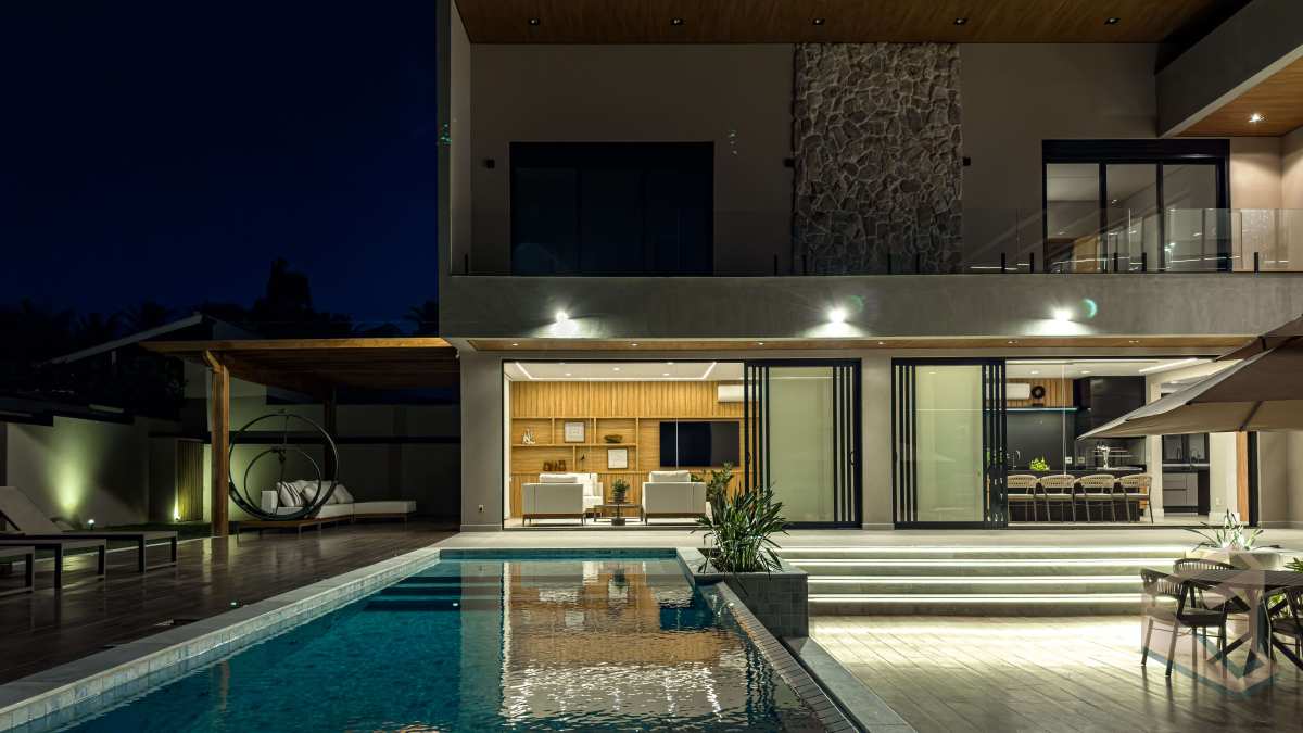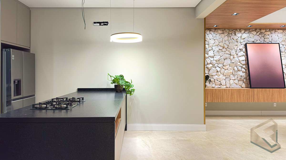 - Arquitetura em conceito aberto que valoriza luz natural, ventilação cruzada e amplitude visual em todos os cômodos.