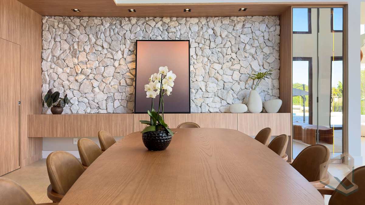 # Ambientes amplos com acabamento de alto padrão, marcenaria planejada e iluminação cênica.